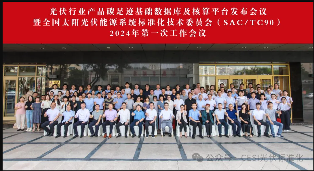 2024年8月23日,由中国电子技术标准化研究院(以下简称电子标准院)主办的光伏行业产品碳足迹基础数据库及核算平台发布会议暨全国太阳光伏能源系统标准化技术委员会(SAC/TC90,以下简称光标委)2024年第一次工作会议在北京顺利召开。工业和信息化部电子信息司王莉莉四级调研员、光标委主任委员/电子标准院杨旭东院长出席会议并致辞。国家发展和改革委员会资源节约和环境保护司宋柏函二级主任科员、国家应对气候变化战略研究和国际合作中心战略规划部柴麒敏主任、电子标准院张军华主任、光标委委员、观察员、在研标准项目起草单位代表等一百余人参加了会议。会议由光标委秘书长裴会川主持并做光标委2024年上半年工作报告。
