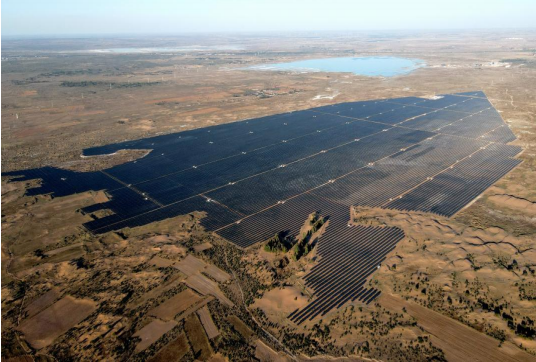 项目采用 450Wp 单晶硅组件+固定可调支架+集中式方案,每 3.125MW 为 1 个子阵,共 96 个子阵;每 26 块组件串联为 1 个光伏组串,每 26 路组串接入 1 台 24 路直流汇流箱,每 14 台组串逆变器接入 1 台 3125KVA/35KV0.8KV 箱逆变一体化 设备,将电压升至 35KV,通过全长 25.88 公里 110KV 输电线路送至公布井 330KV 变电站。项目每年可发电 5.07 亿千瓦时,节约标准煤 15.64 万吨,减排二氧化碳 47.06 万吨、一氧化碳 41.14 吨、二氧化氮约 0.18 万吨、烟尘 0.21 万吨。项目为 推动县域经济清洁、高质量发展贡献积极力量。