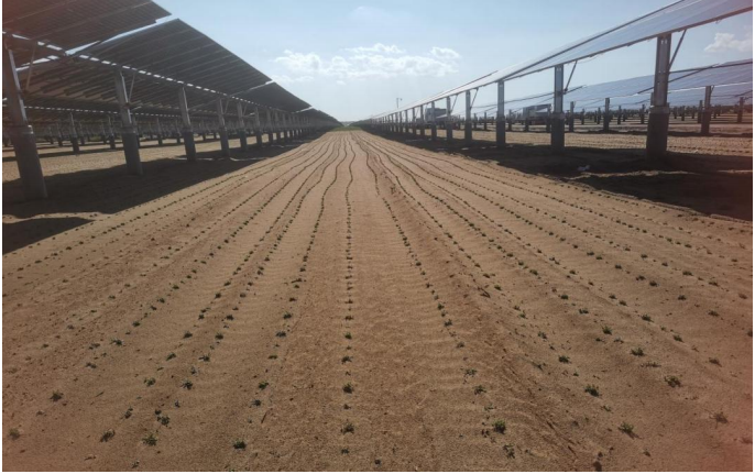 (二)发电、固沙、养殖、科研协同发展 在光伏电站种植牧草,实现“一草两用”,既能防风固沙,又可形成规模化养 殖;盐碱地治理研究可提高土地利用率。