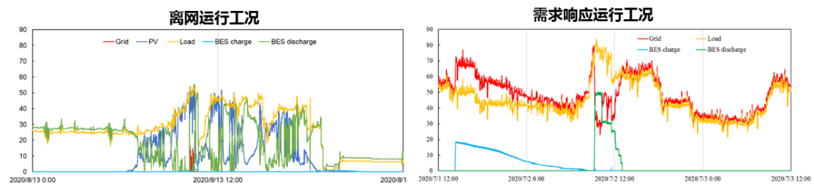 “光储直柔”是使建筑用电负荷具备灵活调整能力,能够优化用电负荷曲线,与电网友好互动,实现城市供能可靠性、用能经济性和环境友好性三者综合最优的集成技术。本示范项目中采用了多种建筑分布式储能系统,并且采用基于直流母线电压的自适应控制技术,解决了传统交流并网光伏系统出力随机,储调和光伏耦合控制稳定性差的问题,能够根据上级电网的需求响应信号自动调节分布式光伏和储能蓄电池出力,能够保证本项目全年80%的时间可以不依赖市政电网进行离网运行,全年建筑用电峰值负荷降低幅度达到64%,屋顶光伏发电的自用率达到97%,实现了可再生能源、直流和变频负荷的高效接入和灵活管理,并根据负载变化和需求提供高效、灵活、安全的供电功能。